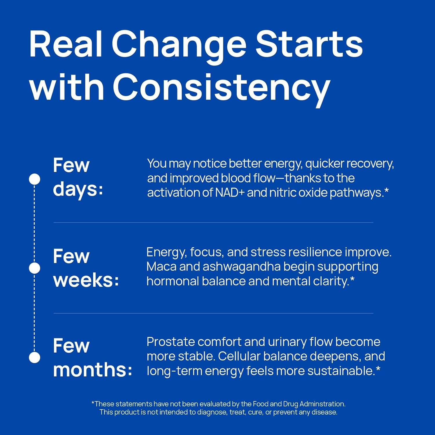 The link between NAD⁺, nitric oxide, and male vitality is well established in scientific literature. This multi-targeted formula is crafted to deliver real benefits from energy to hormonal support.