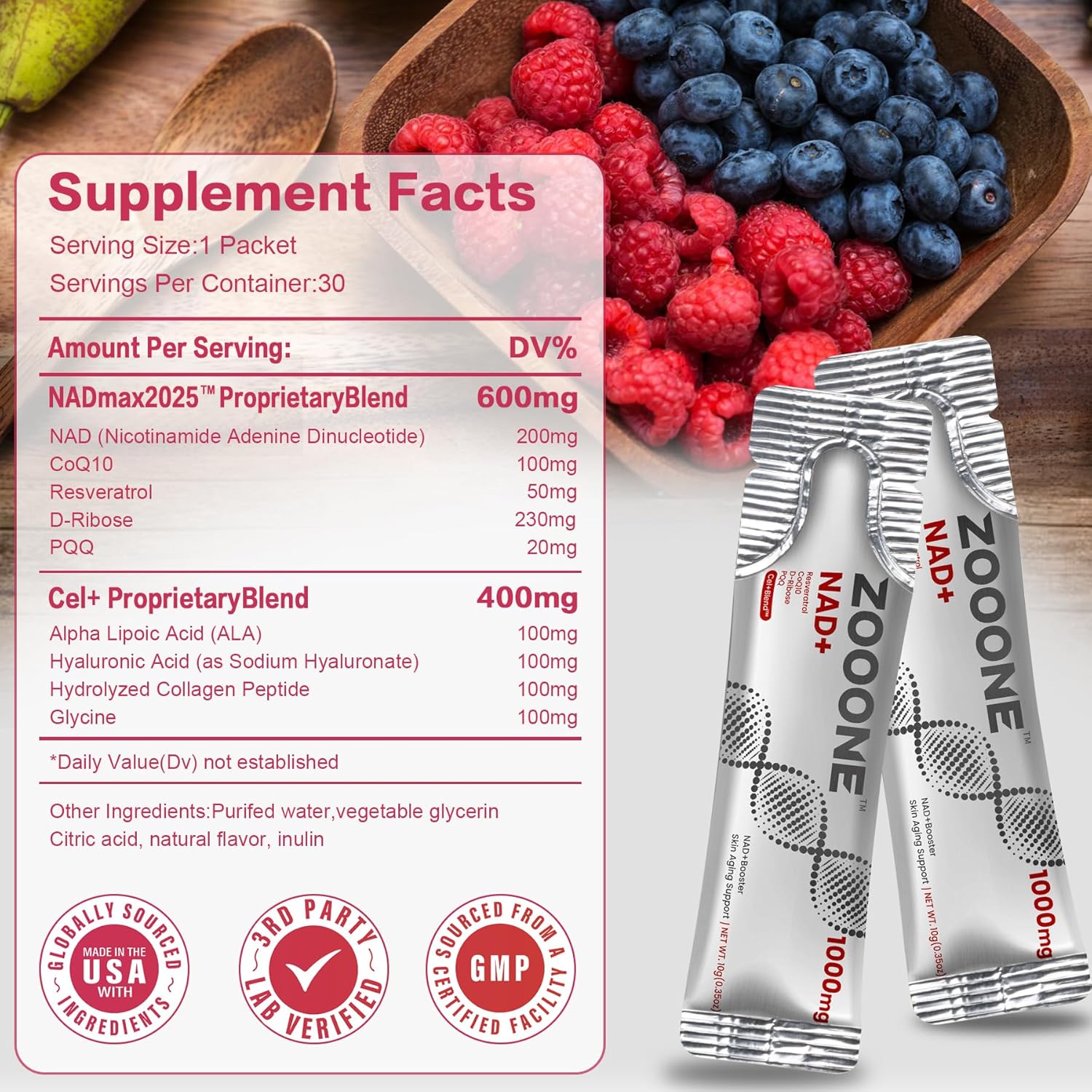 - | 100% Made in the USA |: Zooone is committed to using 100% natural, non-GMO and gluten-free ingredients, and manufacturing them locally in the USA to ensure superior quality. Our NAD supplements for women and men are scientifically formulated for optimal cellular health and long-term vitality.
