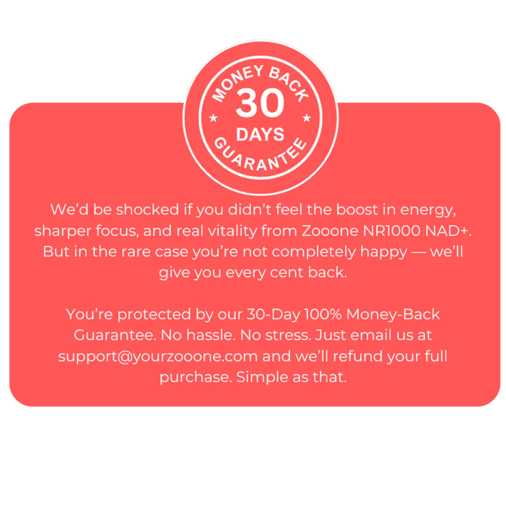 We believe in the effectiveness of Zooone NR1000, which is why we offer a 30-Day Risk-Free Guarantee. If you don’t feel a noticeable difference in your energy, focus, or overall well-being, simply contact wueisshopify@outlook.com within 30 days of receiving your order.