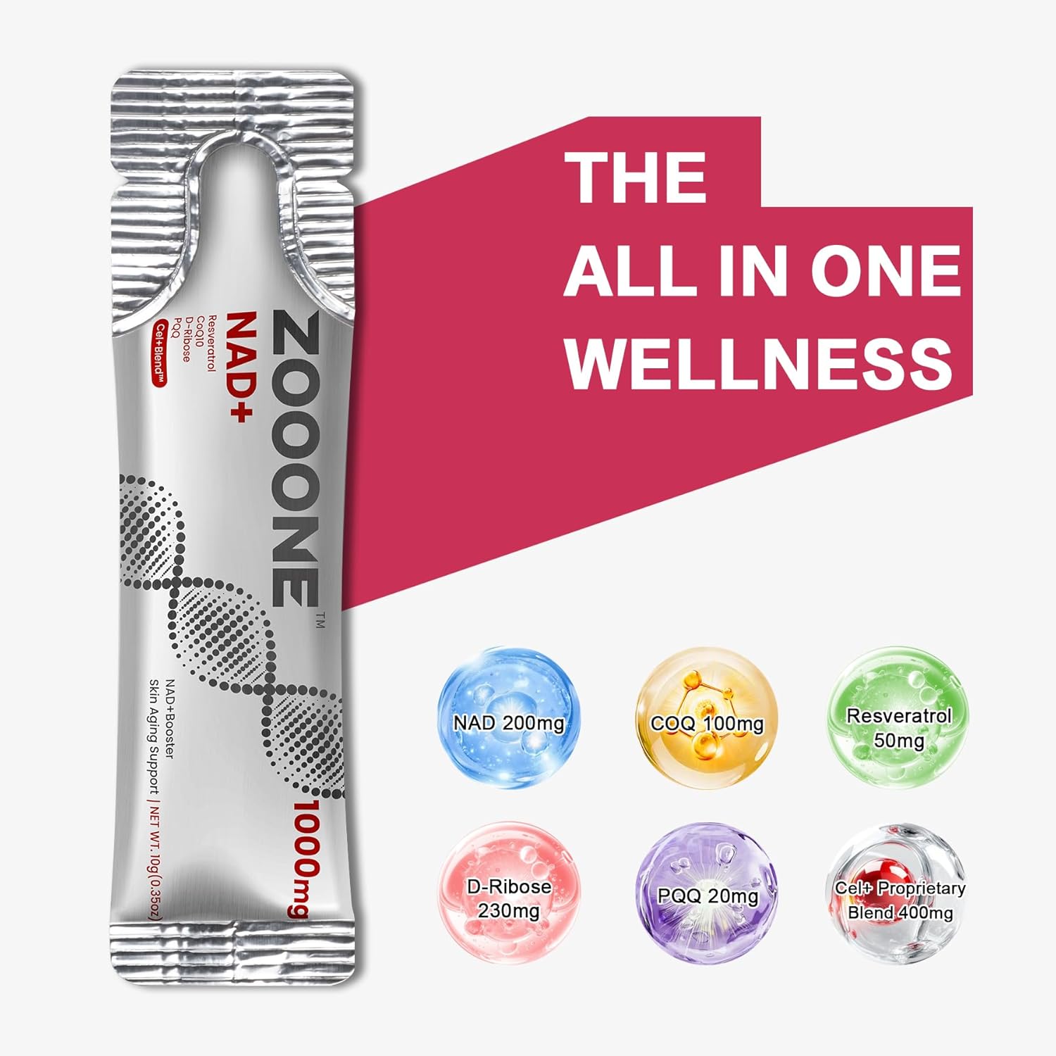 - | Premium NAD+ Anti-Aging Formula |: Zooone NAD supplement delivers a powerful 600mg dose of NAD+, combined with nicotinamide riboside and resveratrol, to enhance cellular energy production, support longevity, and promote healthy aging.